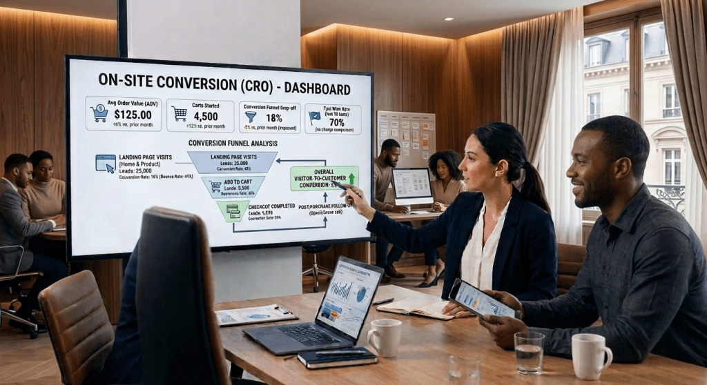 • Page Optimization: Improve product detail pages (images, copy, social proof, upsells/cross-sells) and reduce friction at checkout.